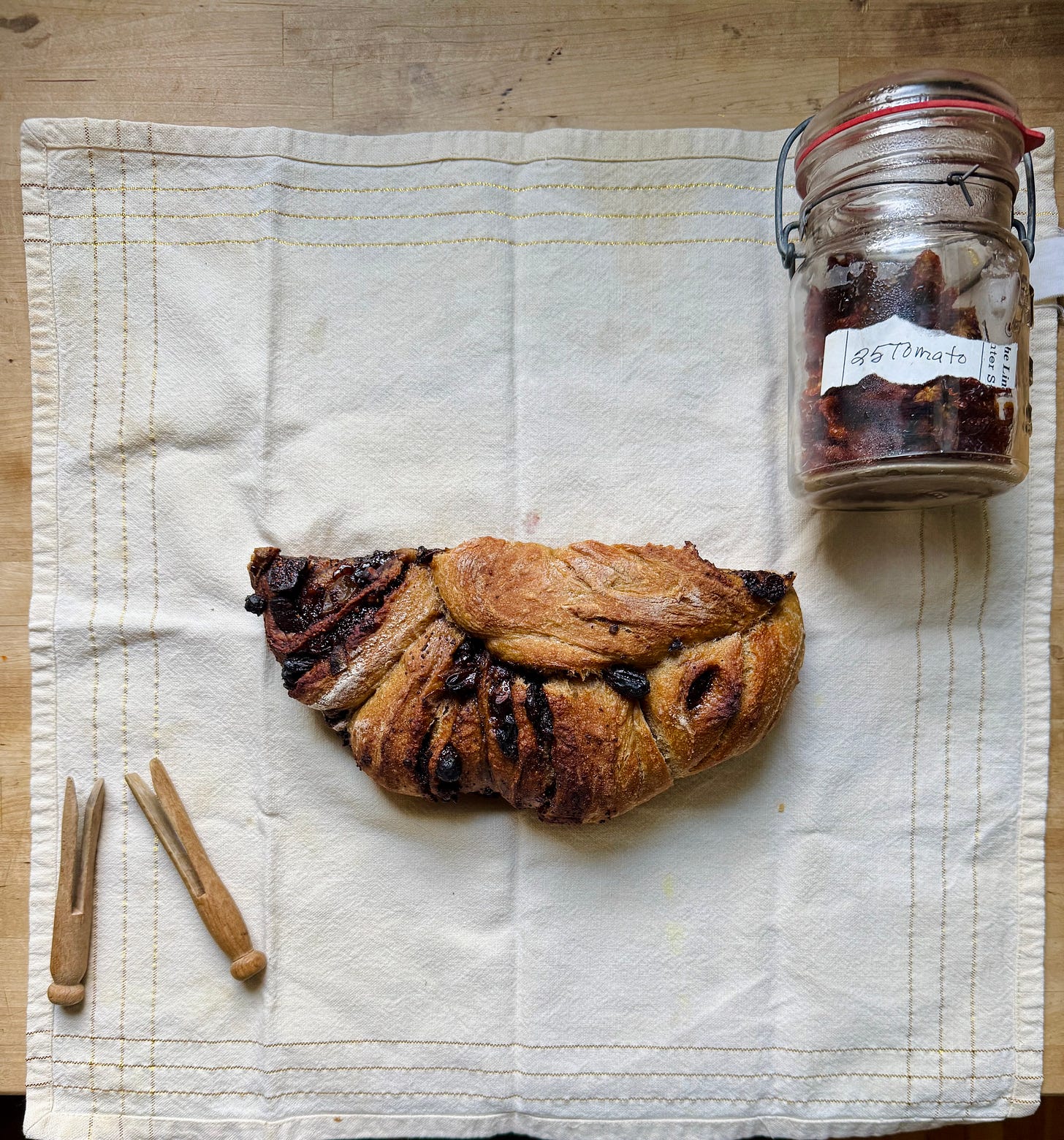 *the cinnamon bread that was delivered along with a jar of “…cherry tomatoes this year cut in half then dehydrated. Rehydrate in tomato soup or stew.” feeling thankful for neighbors.
